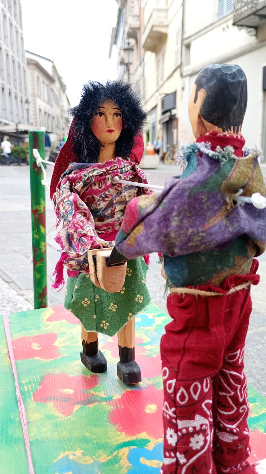Le sue marionette vivono nell’anima della musica e con la stessa linfa vitale che dona al legno la sua essenza, animano lo spettacolo curioso di un ballo cadenzato.